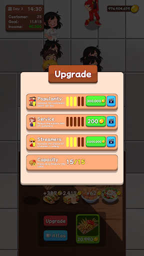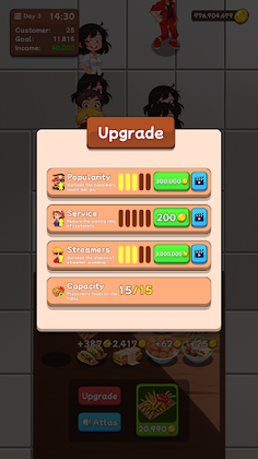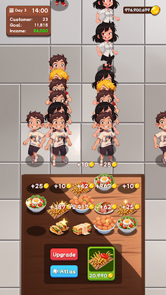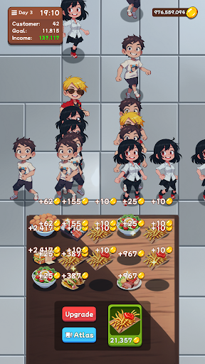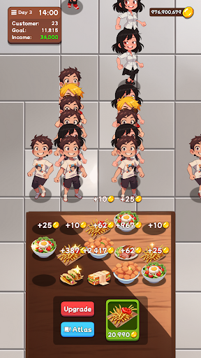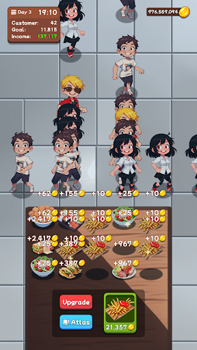Of course, running a fast food restaurant is not just about combining food, you also need to upgrade various stuffs with the gold coins you earn, such as expanding the store, trainning staff, improving service speed, buying new equipment, etc. Your goal is to become a tycoon in the fast food industry, and build your own fast food empire!