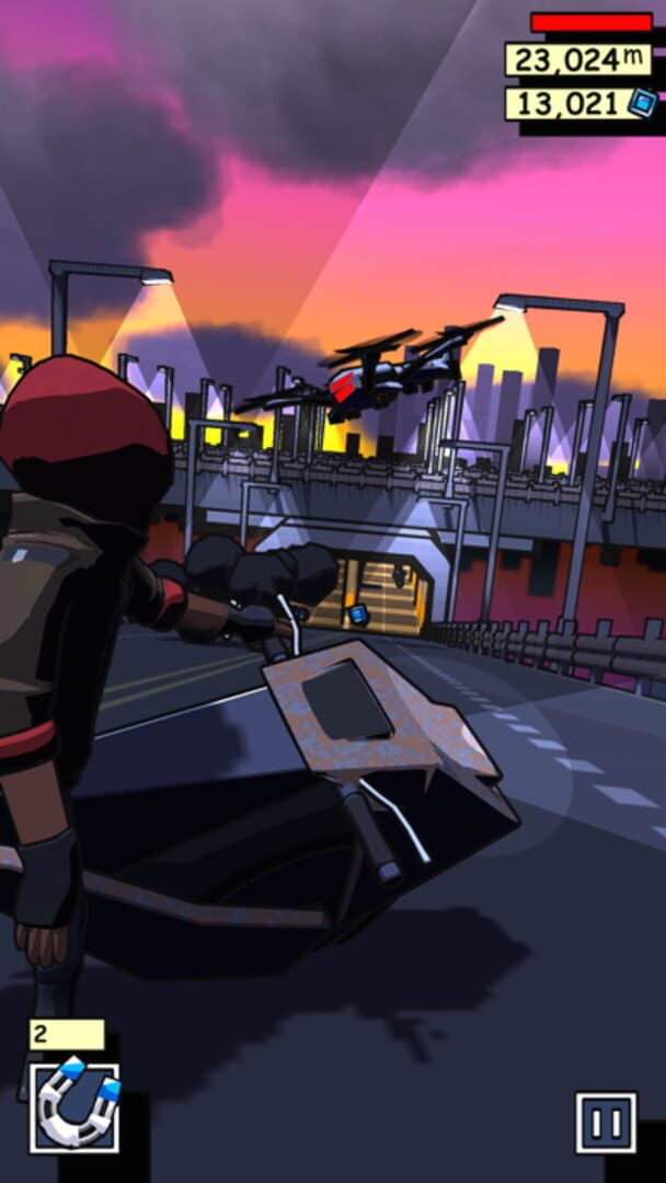 Hack through a dystopian cyberpunk world as Dodge and Weave, collecting data and evading gun-toting hover-drones, in the thrilling BYTE RIDER game.