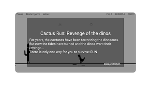Cactus Run: The Dinos's revenge is a quick and easy game where you, a cactus, have to avoid the dinosaurs who are trying to get you.