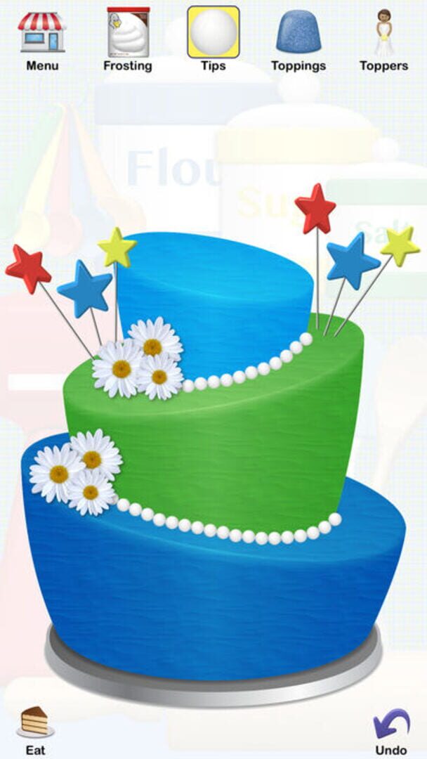 With 49 frosting colors and 74 different icing tips, you can let your creativity run wild and design a cake that truly represents you. Once you're done, you can save it to your photo album, share it with your friends, or even eat it yourself!