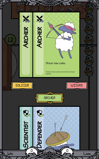 In the game, players take turns attacking each other with Archer, Soldier, and Wizard Sheepie, while defenders block with Defenders and Scientists. The key is to play your cards facedown and declare what you've played. You can lie, of course, and call your opponent's bluff. But if you guessed wrong, you'll lose the round.