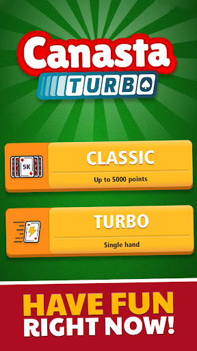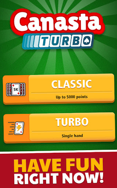 - Classic or Turbo mode: Choose between Classic Canasta mode, with multiple hands and points adding up to 5000, or the Turbo mode, a quicker variation enabling you to play shorter matches!