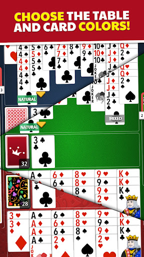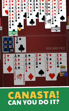 Canasta Jogatina has two different card game modes, classic, and turbo. Play with 2 or 4 players and make many Canastas by melding at least seven cards of the same rank.