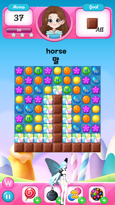 In the game, you can meet the rich graphics of delicious Candy, Chocolate, and Biscuit. Of course, you can not eat them but you can enjoy them all day in your game. The fairy will guide you through the puzzle from the beginning to the end. Candy Game is easy and relaxing game for all level of players. As a bonus, the game provides the language education. At the moment, you could match the alphabet to trigger English words. Then you can learn What the word means in Korean. It is the great game to catch both fun and education.
