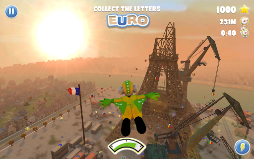 Fly through the air in Cannon Flight, using jump pads, trampolines, and your wingsuit to face challenges, unlock levels, and defying gravity's limits.