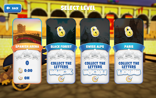 • Four thrilling levels: Spanish Arena, Black Forest, Swiss Alps and Paris