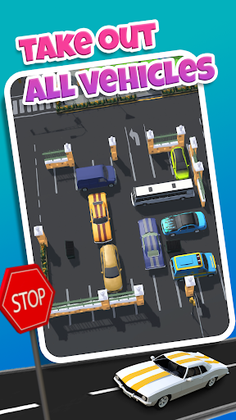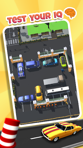This car puzzle game requires you to solve a parking jam puzzle in order to take all cars out .