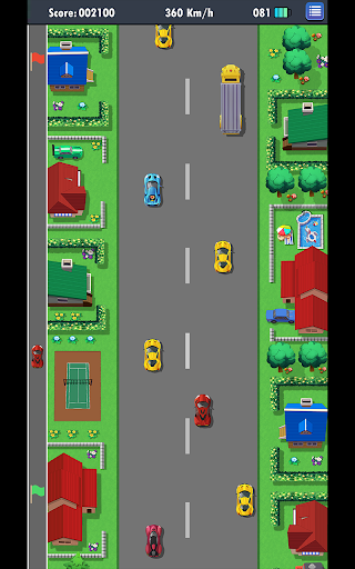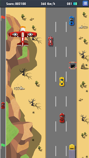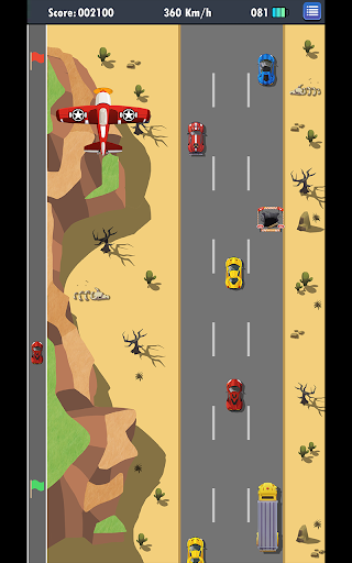 There are many type of obstacles in game: yellow car, blue car, red car, truck, potholes. Avoid colliding with them.