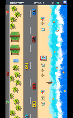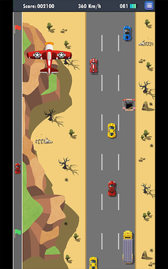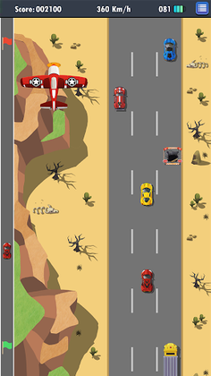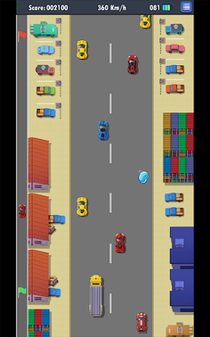 The player's speed is automatic increase to 360 km/h. The player has a limited amount of battery and can earn more by collect battery on the road. If the player crashes into the side barriers, the car will explosion and loss some battery unit.