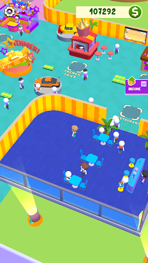 Next, you'll move to the hall where the ticket counters are located. In the hall, you can enhance the overall aesthetics by purchasing various decorative items. The more appealing the hall, the more attracted the spectators will be.