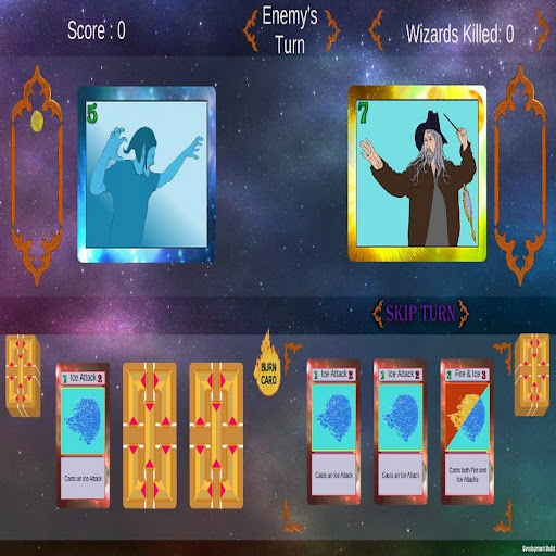 It is a game in which the player represented by merlin fights against demons, evil wizards using cards from a personal collection. The goal is to defeat the opponent by crafting custom decks that exploit card synergies. A deck is a set of cards that players can use throughout the game. The most optimized decks will try to take into account the randomness of the game as well as the opponent's actions. During the game the players take turns and perform actions related to the game.
