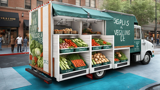 Drive cargo truck and supermarket truck with cargo transporters.