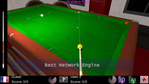 8 A game of carambole is played with 2 players, each playing with a yellow or white ball. With their ball, players must hit simultenaeously the two other balls.This Billiards game gives you the ability to against device, train solo or compete in real-time with players from any country.