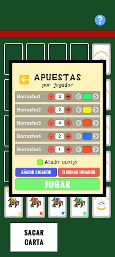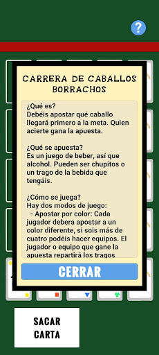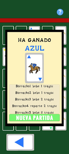 Este juego simula el juego de cartas Carrera de caballos, en el que se debe apostar qué caballo llegará antes a la meta y el que gane reparte tragos entre los perdedores.