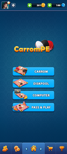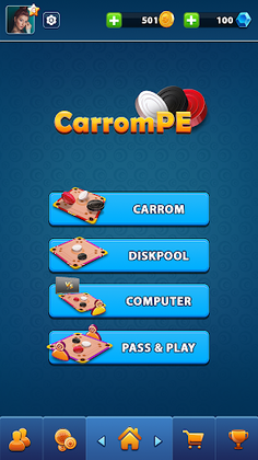 Carrom or Karrom, an Indian version of pool or billiards or carom billiards, play the cross platform multiplayer and pot all the coins before your opponent to win!