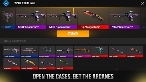 - Open cases, boxes, sticker packs, charm packs and get the arcanes;