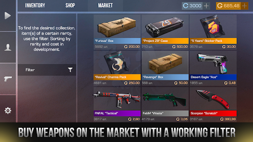 In this case simulator, you can open cases as much as you want, collect top-end inventory, customize your weapons with stickers and charms. You can also play mini-games and earn a lot of gold for new discoveries and purchases on the market! Have you collected a lot of unnecessary skins? Sell them on the market or craft a new skin from them, because in this case simulator, the crafting system is completely similar to the crafting from Standoff 2.