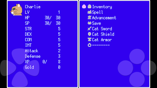 Classic RPG Supported English and Japanese Requirements OS:Android 1.6 or higher & Touch screen Resolution: 480*800 or higher http://studioneko.net/catfantasy/