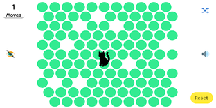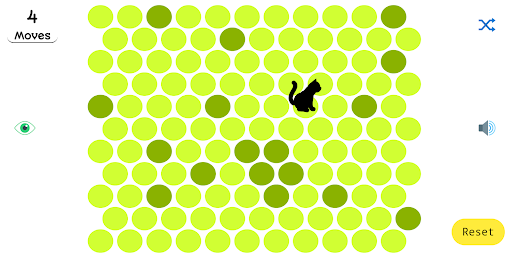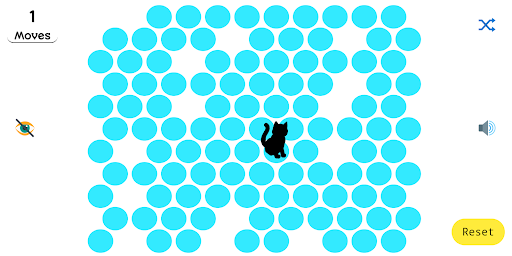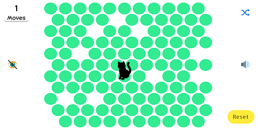 The cat is placed on a floor made up of circles. She can jump on active circles and escape the mat. We have to close the active circles by clicking them, after each click the cat moves to the next active circle and eventually runs away.