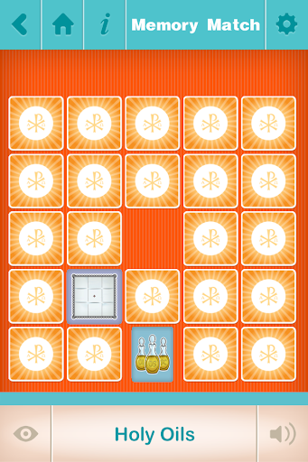 • MEMORY MATCH: Play the popular “Memory Match” game with colorful Catholic illustrations. Choose a 4, 8, 12, 24, 36 or 48 card game. Special “Show All” and “Show Revealed” cards add a new level of fun. As the cards flip, the object’s name is heard. Whimsical animations let you know you’ve matched a pair. Play against the clock, aim for accuracy, or compete against friends. Then, enter your high score. The audio, images and text make it fun to practice reading, listening and word recognition. An addictive way to learn new Catholic words!