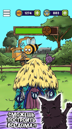 Help these wonderful cats build houses. Click on houses to build faster. Hire assistants to build for you even when you are not. Improve your building skills and the skills of your assistants. Buy new homes for which give more coins. Develop, get passive income. Prove to these cats that you are the best builder. Coming soon: leaderboard, new levels, tournaments, competitions, valuable rewards for leaders and much more