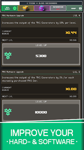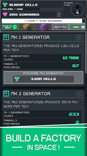 Fun mini-games and activities will give you a break from producing cells. Meanwhile, the full offline and idle income option will enable the game to run automatically while you're away. There are many upgrade menus to help you grow your empire, and you'll enjoy constructing the most extensive industrial fleet in the cosmos. So, what are you waiting for? Come and experience the excitement of CIFI today, boss!