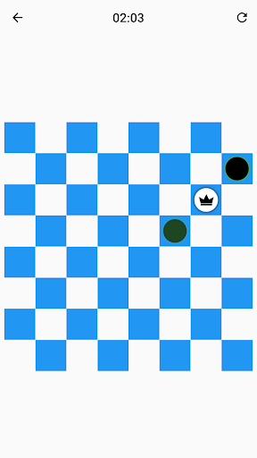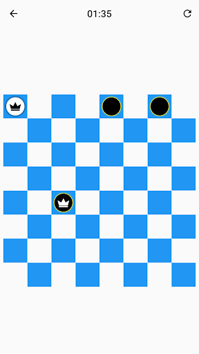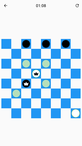 Only the dark squares of the checkerboard are used. A piece can only move diagonally into an unoccupied square. The player without pieces remaining, or who cannot move due to being blocked, loses the game.