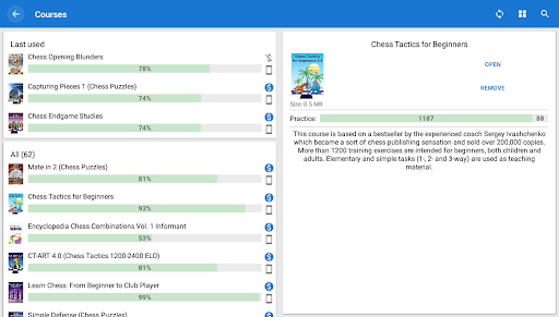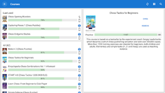 It includes courses in tactics, strategy, openings, middlegame, and endgame, split by levels from beginners to experienced players, and even professional players.