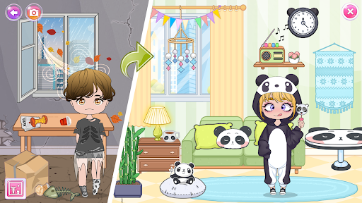 * Chibi Room - decorate and design a home girly world of Chibi dolls. Put your dressed up character, boca pets, paint walls, and floors, arrange room furniture, and many other things. Then you can go renovation in a relaxing environment. Explore and unlock funny secrets: turn on the TV, get your sweet chibi sleep, cut fruits, and many more while making a lovely home design!