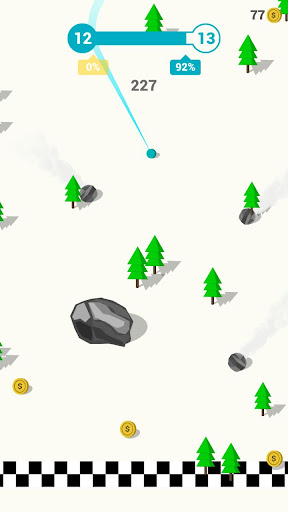 The gameplay is simple: tap to turn left or right, and hold to turn sharply to avoid obstacles like trees and stones. But don't let the simplicity fool you - the obstacles come fast and furious, and one wrong move could mean game over.