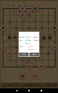 With Chinese Chess, you can play with the mobile (3 levels of difficulty: Easy, Medium and Hard) or play directly with another person on the 2 mobiles connected via Bluetooth.