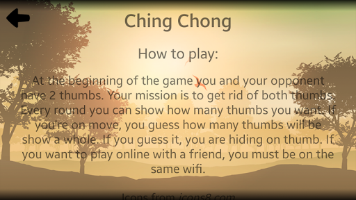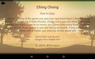 A game of strategy and guessing, try to get rid of both thumbs. Play with a friend on the same wifi. Ching Chong is open source.