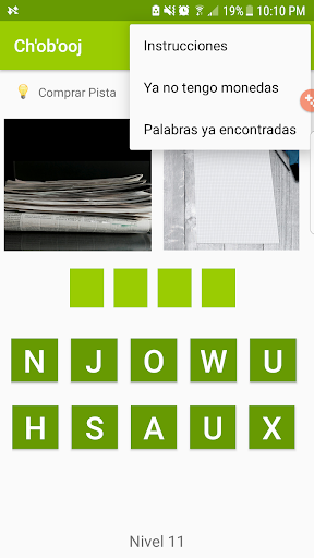 Pon tu mente en acción, descifrando la palabra descrita por dos imágenes, practica las palabras más comunes y palabras no tan usadas del idioma Tzutujil.
