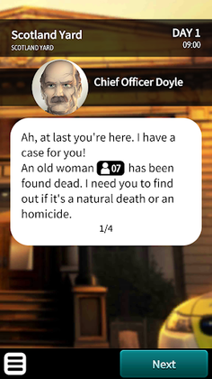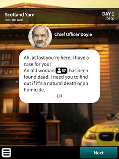 Launch the app, select the scenario you want to play, and reveal a story built from your choices as you pursue your goal: uncover the clues behind the crime, chase the evidence, and find the killer as quickly as possible.