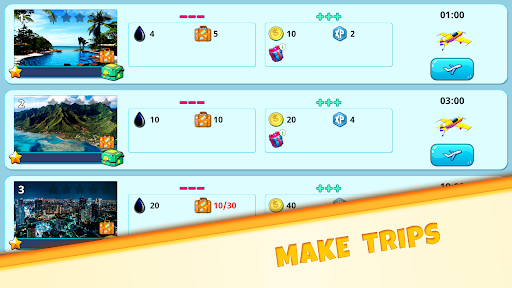 At the railway station you send tourists on a trip, transport cargo on trains, and receive guest trains. Long-distance flights are also available. Build and upgrade more railway tracks. Buy new trains. Like in train simulator. And you can build other buildings on your train station.