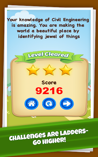 If your morning starts with a cup of coffee and indulging yourself in Crossword Puzzle, this is just the right app for you. It will add on to Civil Engineering list with every passing level. Add the Civil Engineering names horizontally or vertically with the help of hints. Attempt Trivia to boost the score and learn more and more Civil Engineering names plus related facts like category etc.