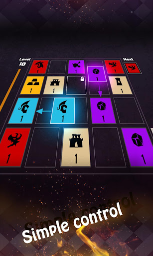 To play this game, simply swipe the screen to move all tiles in the same direction. Strategically combine tiles of the same color to earn points and increase the value of corresponding elements such as Castle, Troops, Dragon, and Catapult. Your goal is to reach the highest score possible by continuously accumulating points.