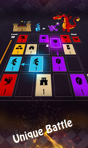In this battle for survival, each tile has a specific function. Castle reduces the score of Dragon, Dragon reduces the score of Troops, Troops decrease the score of Catapults, and Catapults reduce the score of Castle. As you progress through levels in the game, you will unlock unique skills as the King, which can be used in difficult situations to turn the tides in your favor.