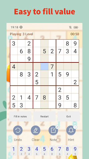 - Classic Sudoku gameplay: Fill the 9x9 grid with numbers from 1 to 9, ensuring that each row, column, and 3x3 subgrid contains all the digits only once.