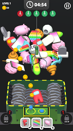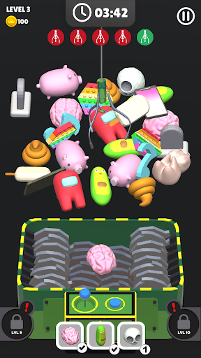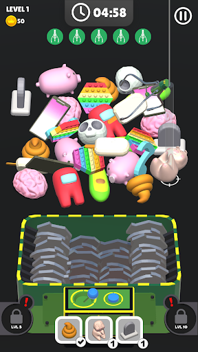 You have to grab the objects by controlling the claw, then throw them to shredder machine.
