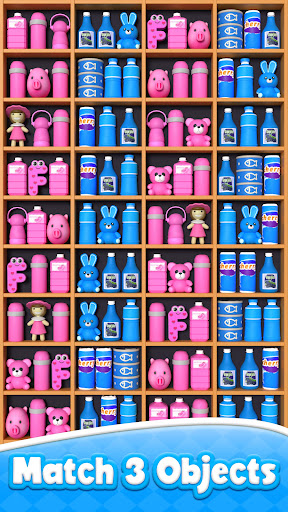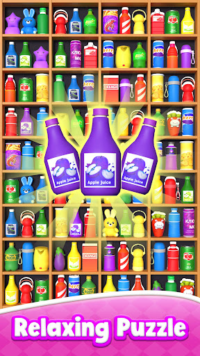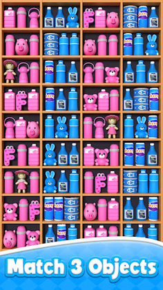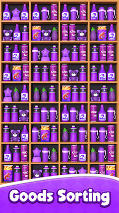 Goods sorting to get three, the items will disappear. You will pass the sorting games level when all items disappear. No timer, and complete goods sorting goal to get props as rewards!