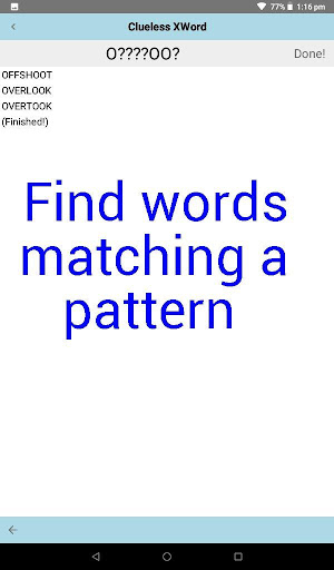 This app is a simple Clueless Crossword solver to pass the time. This app is similar to other Clueless Crossword apps, yet possibly with less functionality. For example, there are no scores, no time limits, no leader boards, and no history of past games.