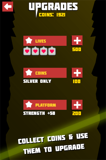 Collect coins and use them to upgrade your platform strength and your lives and see if you can make it further.