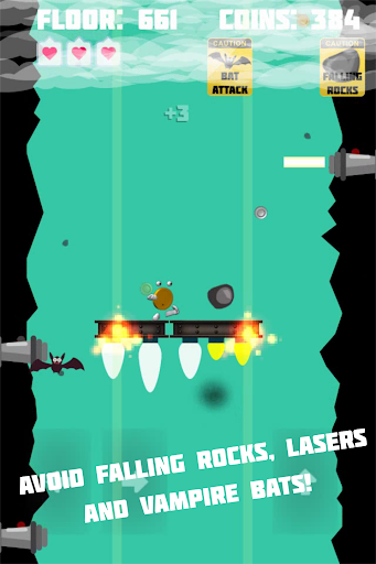 Ride your Rocket Powered Platform from the depths of the caverns and try to avoid the falling rocks, lasers, vampire bats and the deadly fog.