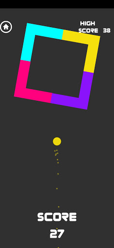 The ball has one color, and can pass through obstacle with the same color, or sneak in between obstacles with different colors.