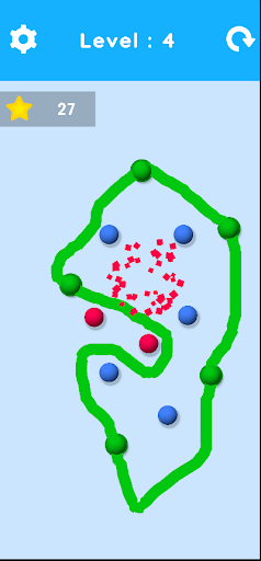 Navigate through an array of dynamic levels, each presenting a unique arrangement of dots. Your task is to swiftly draw circle around the tranquil blue dots, but beware! The mischievous red dots will stop at nothing to disrupt your conquest.