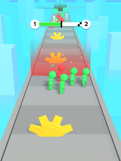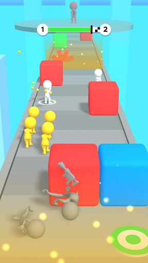 Grow you crowd and shoot the items of the same color as you.