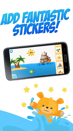 You can create animated drawings and affix wonderful Stickers to create a wonderful sea with an island, a pirate ship and colorful fish.