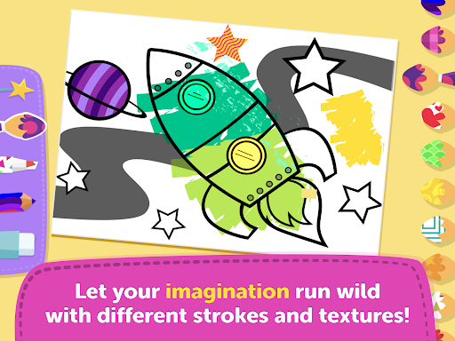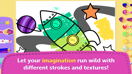 Children can let their imagination loose by using colors, textures, and having a lot of fun! After selecting the theme and the drawing, children will choose between 4 different types of tools available (magic paintbrush, color pencil, classic pencil, and marker), which allow them to create paintings with different strokes and textures, in addition to over 40 colors to let the creativity flow and lead the fun.
