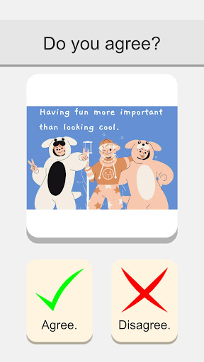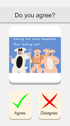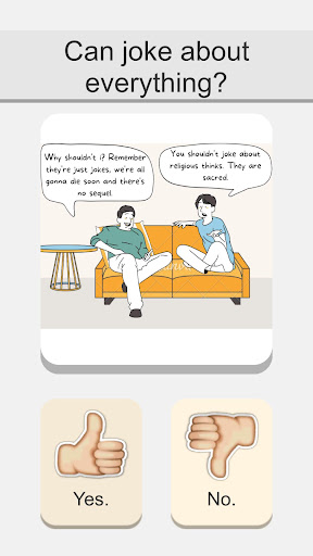 Each level brings you to dilemma with a cartoon scene. Decisions is yours.